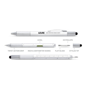Level, two rulers, screwdriver bits, stylus tip, and pen all in one.