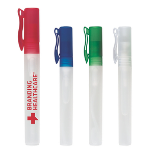 - Marker-sized spray bottle offers a large imprint area