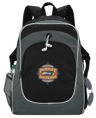 This custom backpack is great for back to school with it's large zippered pocket and headphone port for music on the go! Price includes 1 color imprint