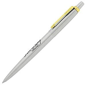 The everyday icon. Instantly noticed, Jotter stands as an authentic design icon of the last 60 years. With covetable colors and a distinctive shape, Jotter remains Parker’s most popular pen, recognizable down to its signature click. They come in blue, black, red, steel with gold clip and steel with chrome trim.