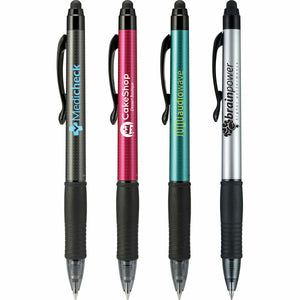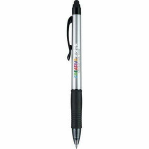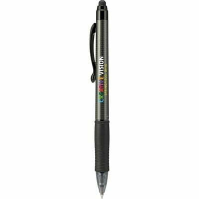 The G-2's retractable gel writing sensation will have your ad-message stand out over your competition. Features a contoured rubber grip and Pilot's revolutionary gel ink. The gel ink formula is water resistant and smear proof that will assure smooth skip free writing every time. Standard colors have a fine point refill with ink color matching the grip color. Metallic colors have a broad point refill, that sparkle with the ink color matching the grip color. Metallic inks are recommended for use on dark color paper. Standard color ink pens have a Smoke translucent barrel and the Metallic ink pens have a Clear translucent barrel.