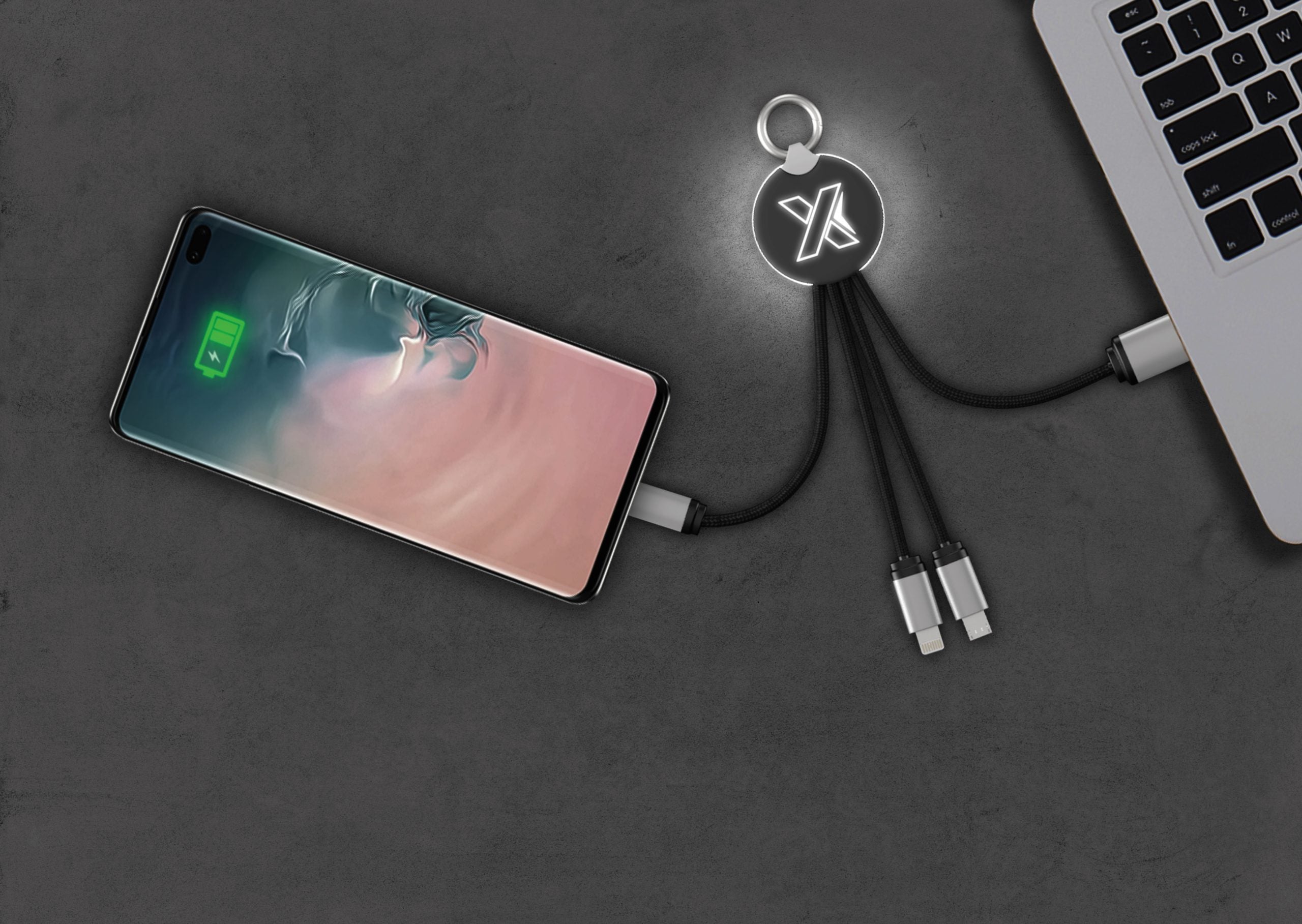 Make the everyday task of charging your devices a little more fun with an illuminated logo. As a bonus, the cords are made from RPET material, making this item an eco-conscious choice. Includes a resealable pouch and a 3-year warranty. Patent pending.