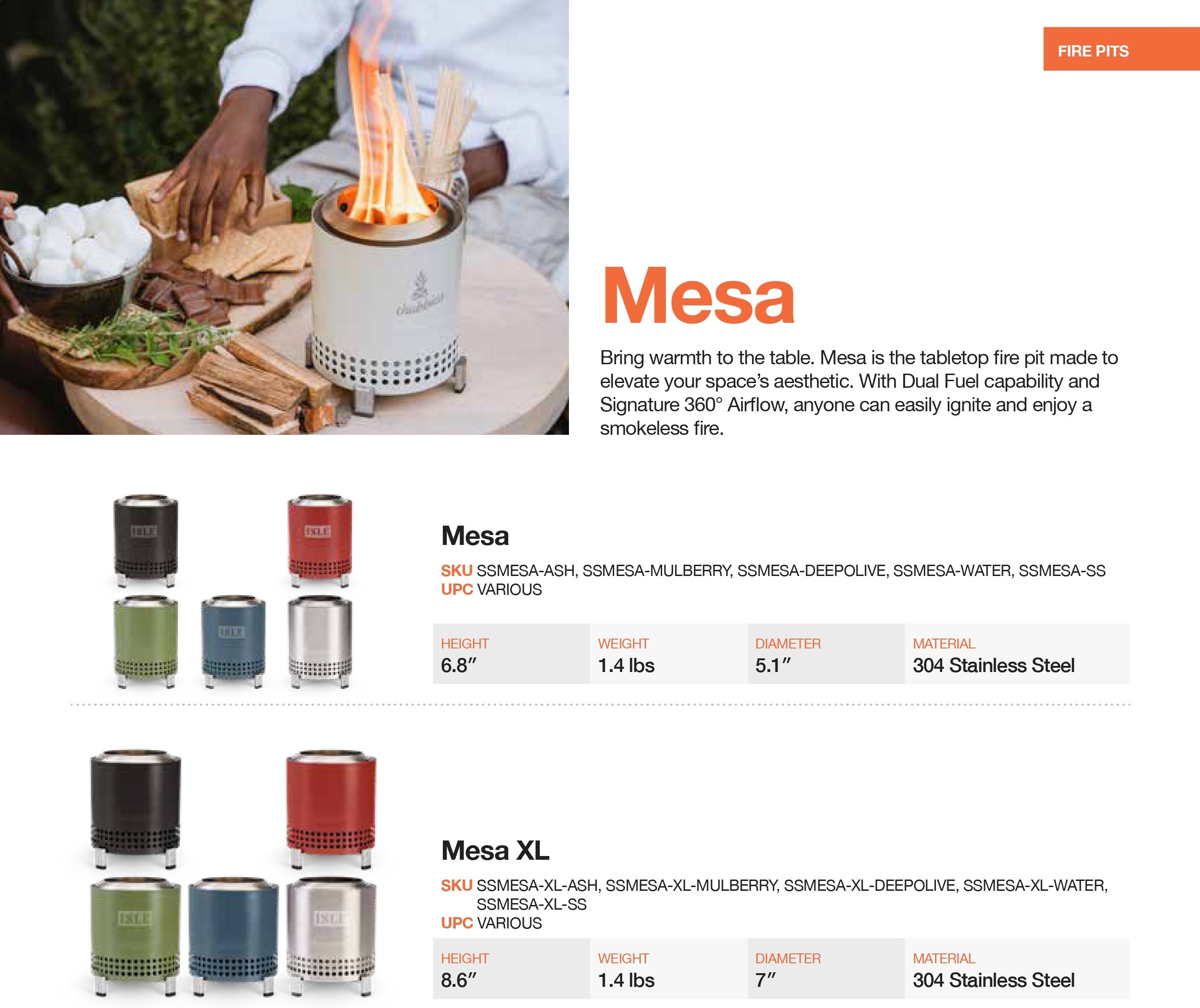 The Mesa features patented smokeless technology and dual fuel capability, allowing it to burn wood pellets or alcohol fuel cleanly and efficiently. This makes it perfect for urban environments where smoke would be problematic.