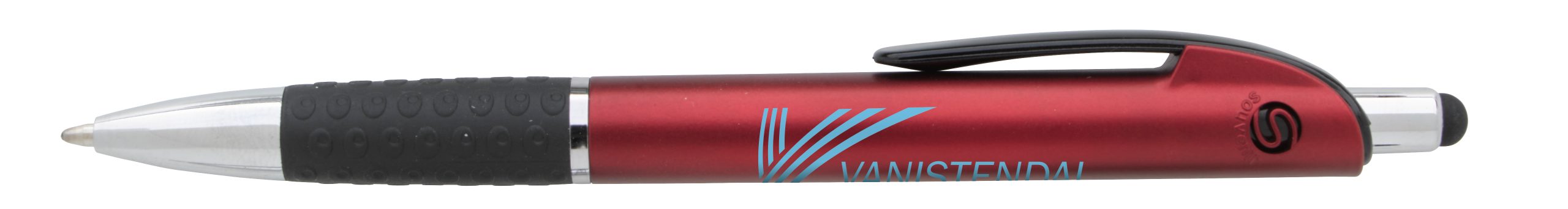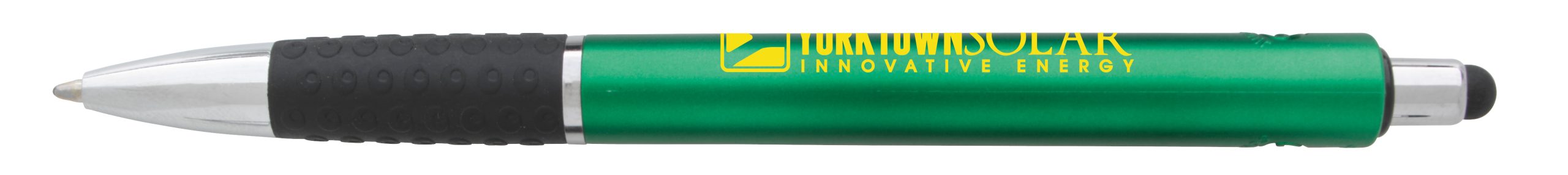 The Souvenir® icon is cut out of this pen's metallic barrel, revealing a pop of color that coordinates with the clip. A comfortable grip and capacitive screen stylus on the plunger make this a versatile writing instrument.